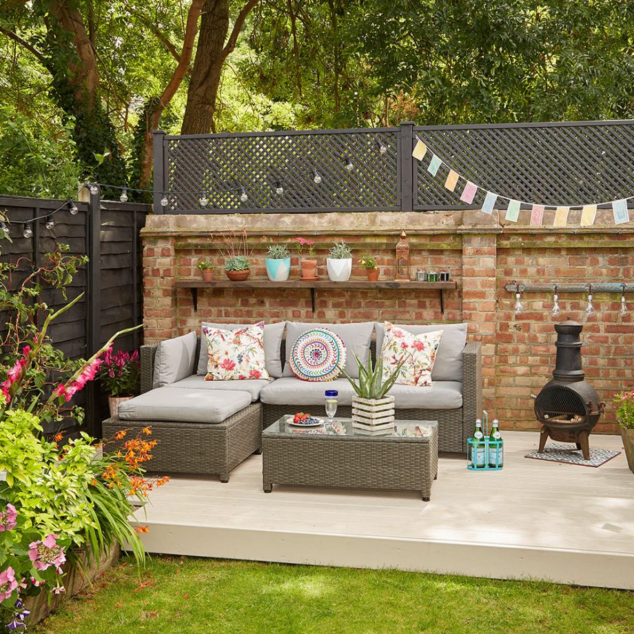 Create some extra outdoor living space with a patio area! Invest in an outdoor sofa and up the comfort factor with plump cushions, side tables and an outdoor rug, so you can make the most of the warm summer weather.