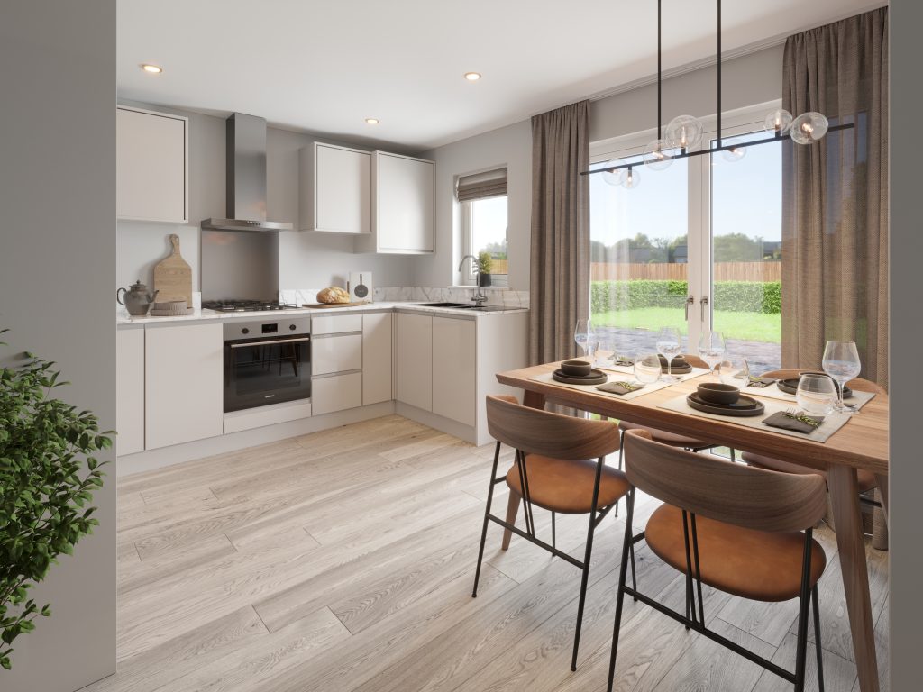 All the homes released at Wheatfields are The Clifton house style, a spacious and contemporary three-bedroom home built with modern living in mind, featuring stylish fittings and integrated appliances, a large kitchen/diner and utility space, a separate lounge for entertaining guests, fully turfed gardens, solar panels and EV charging points, and off-street parking.