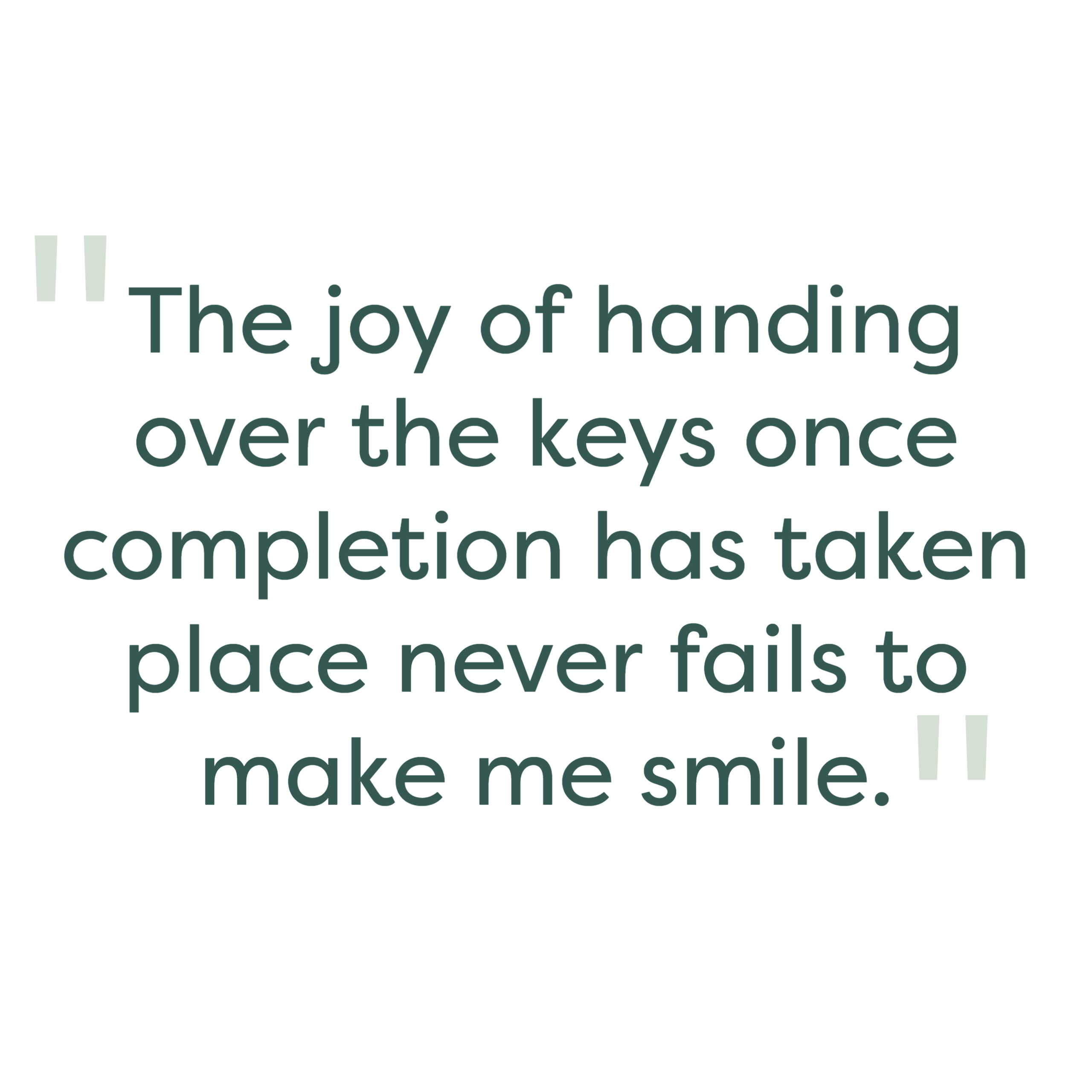 One of the things I love about my job is knowing that without schemes like Shared Ownership, so many people wouldn’t be able to get their foot on the property ladder. The joy of handing over the keys once completion has taken place never fails to make me smile.